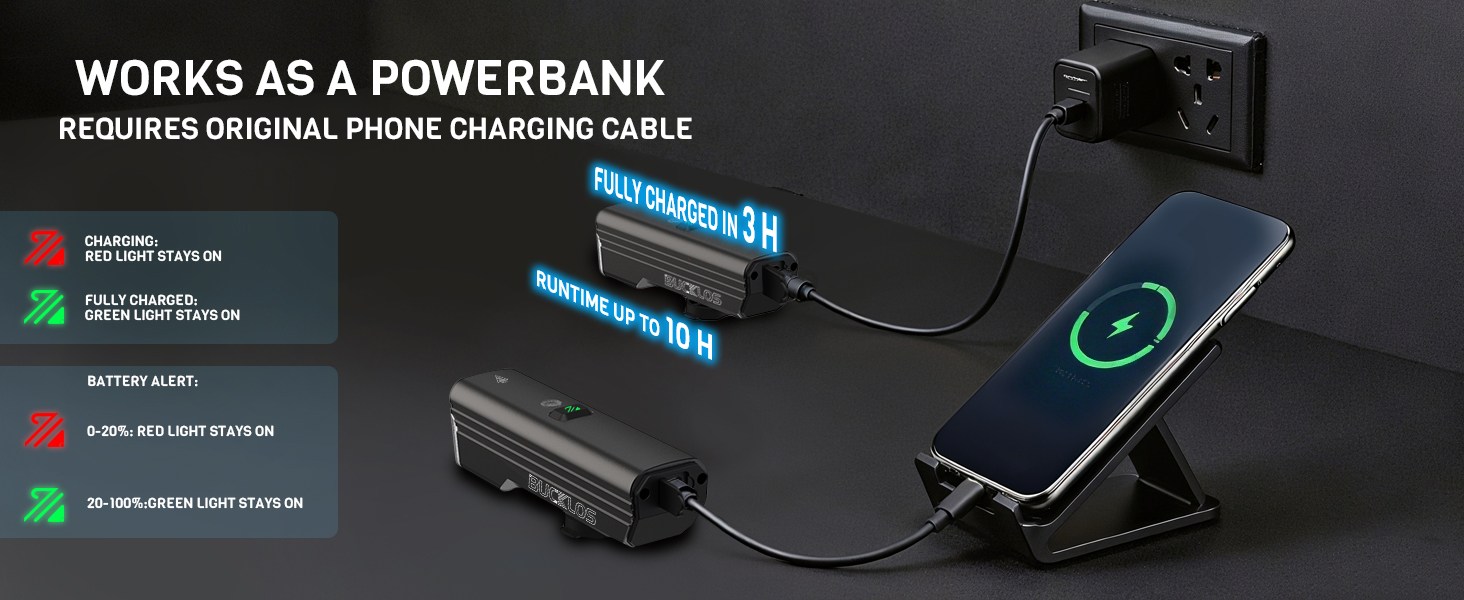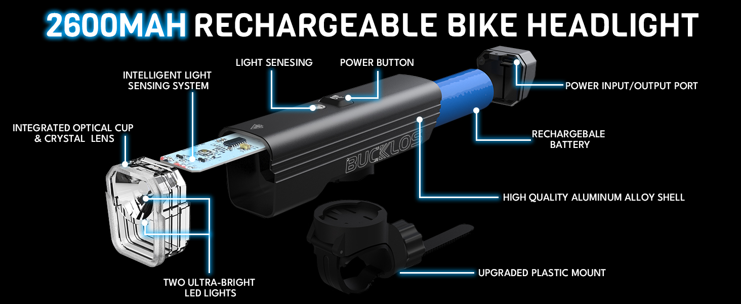 BUCKLOS 1000 Lumen bike headlight with 8 modes, 2600mAh battery