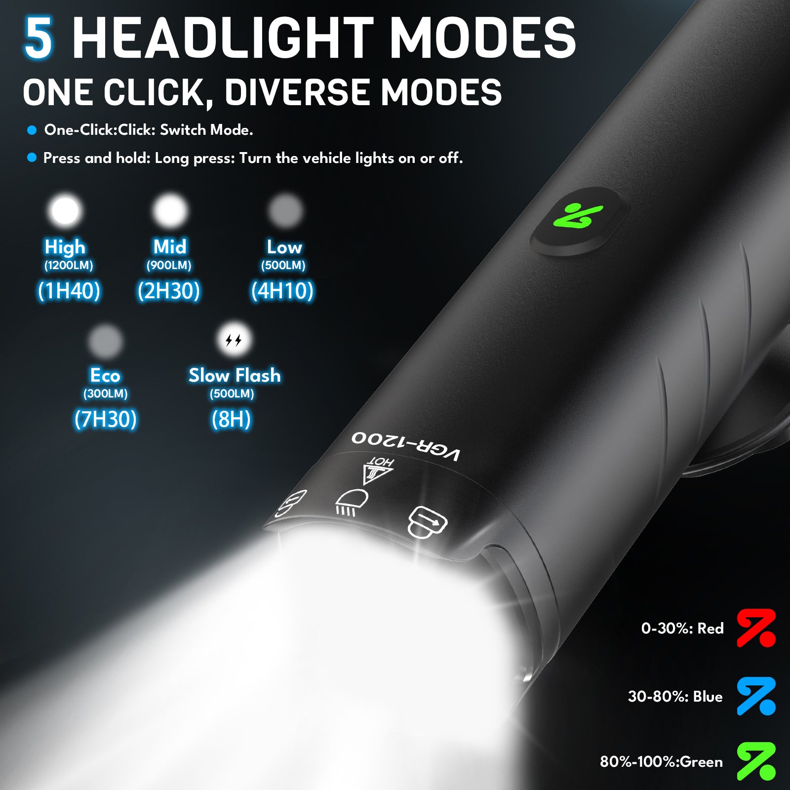 BUCKLOS 1200 Lumen bike headlight with 5 modes, 4000mAh battery