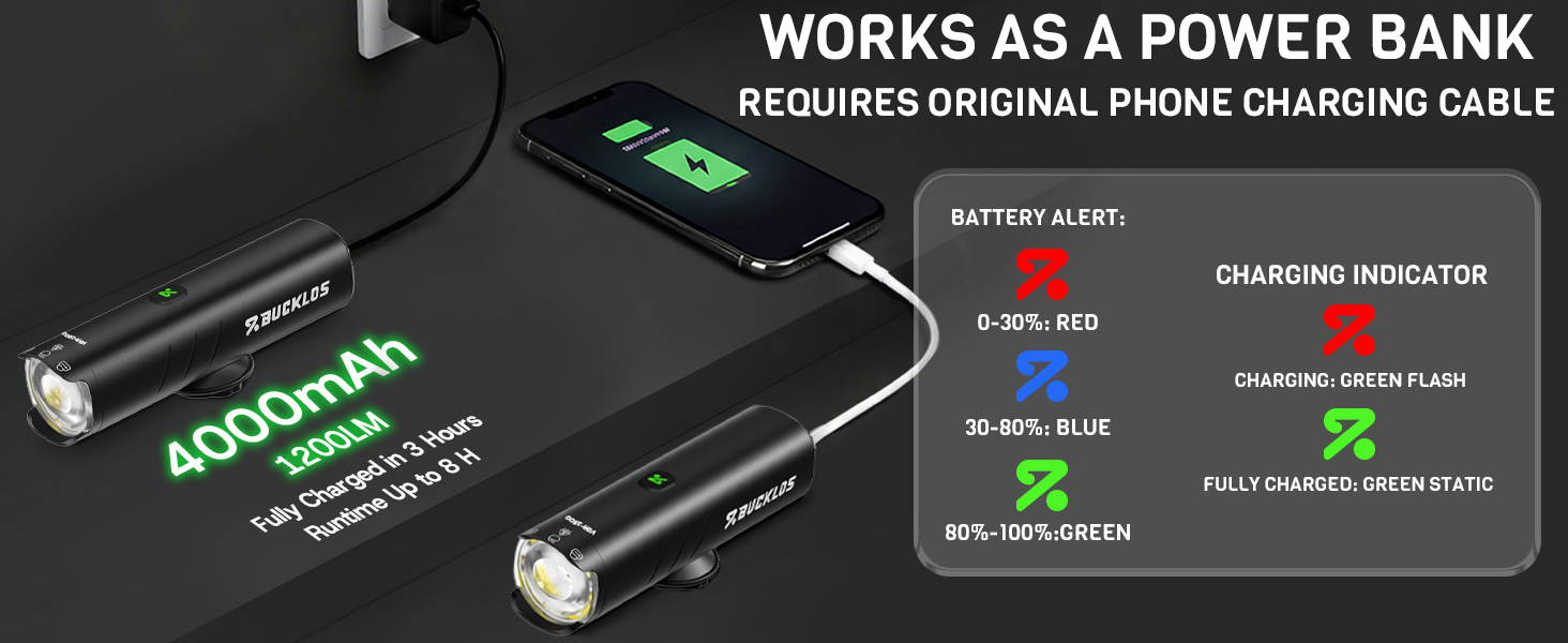 Enhanced Charging Efficiency: As a headlight for bikes riding at night, this rechargeable bike headlight charge fully in 2.5 hours via dual USB-C. The headlights 4000 mAh battery lasts 8h power on flash mode