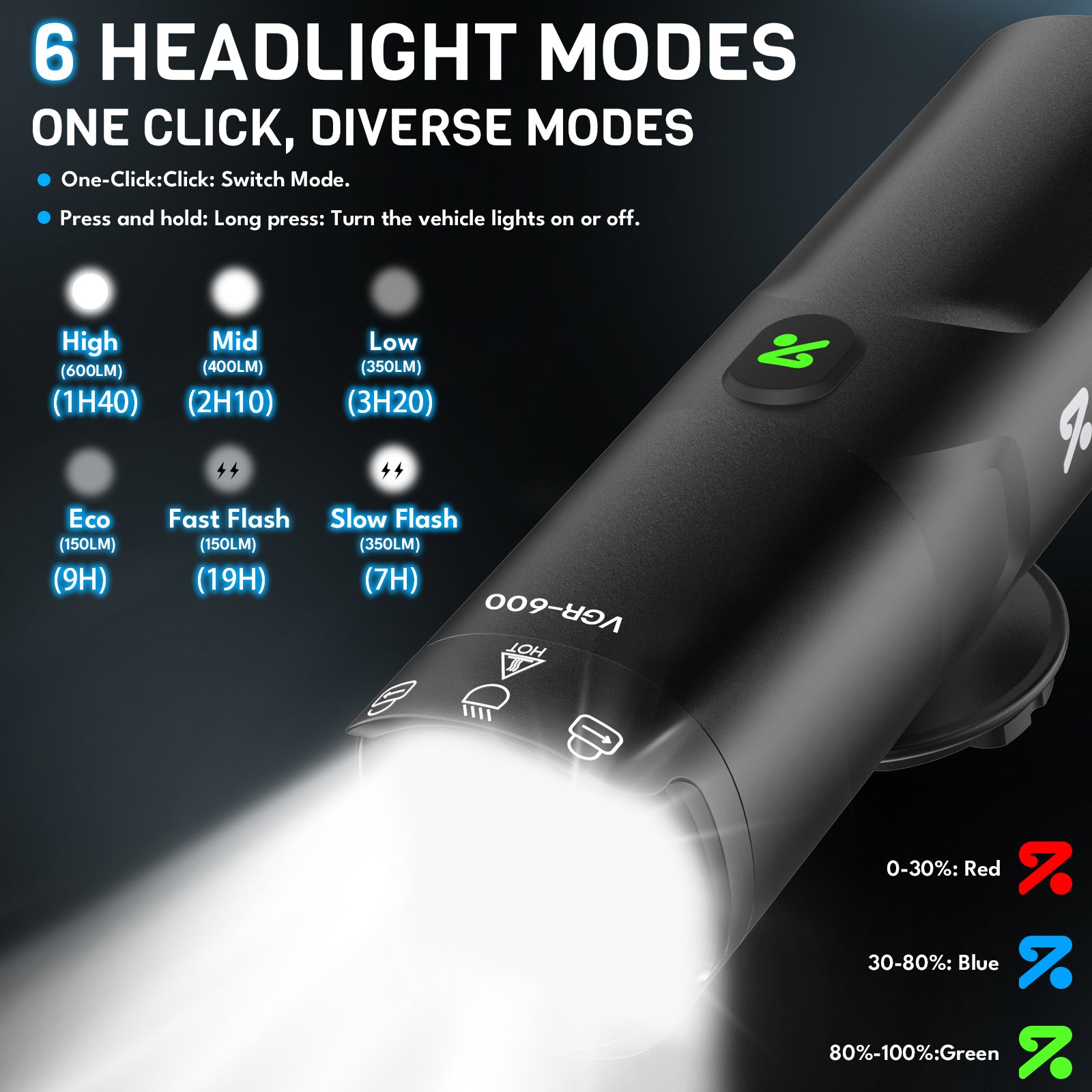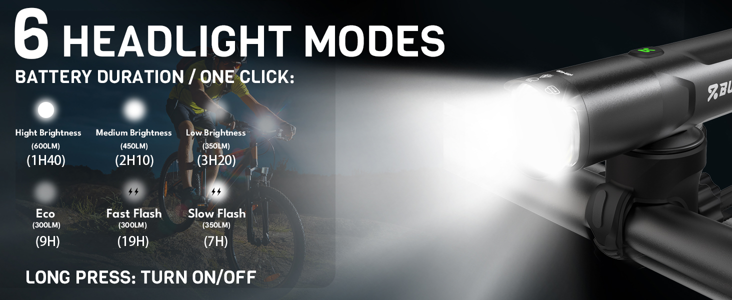 BUCKLOS 600 Lumen bike headlight with 6 modes,2200mAh battery