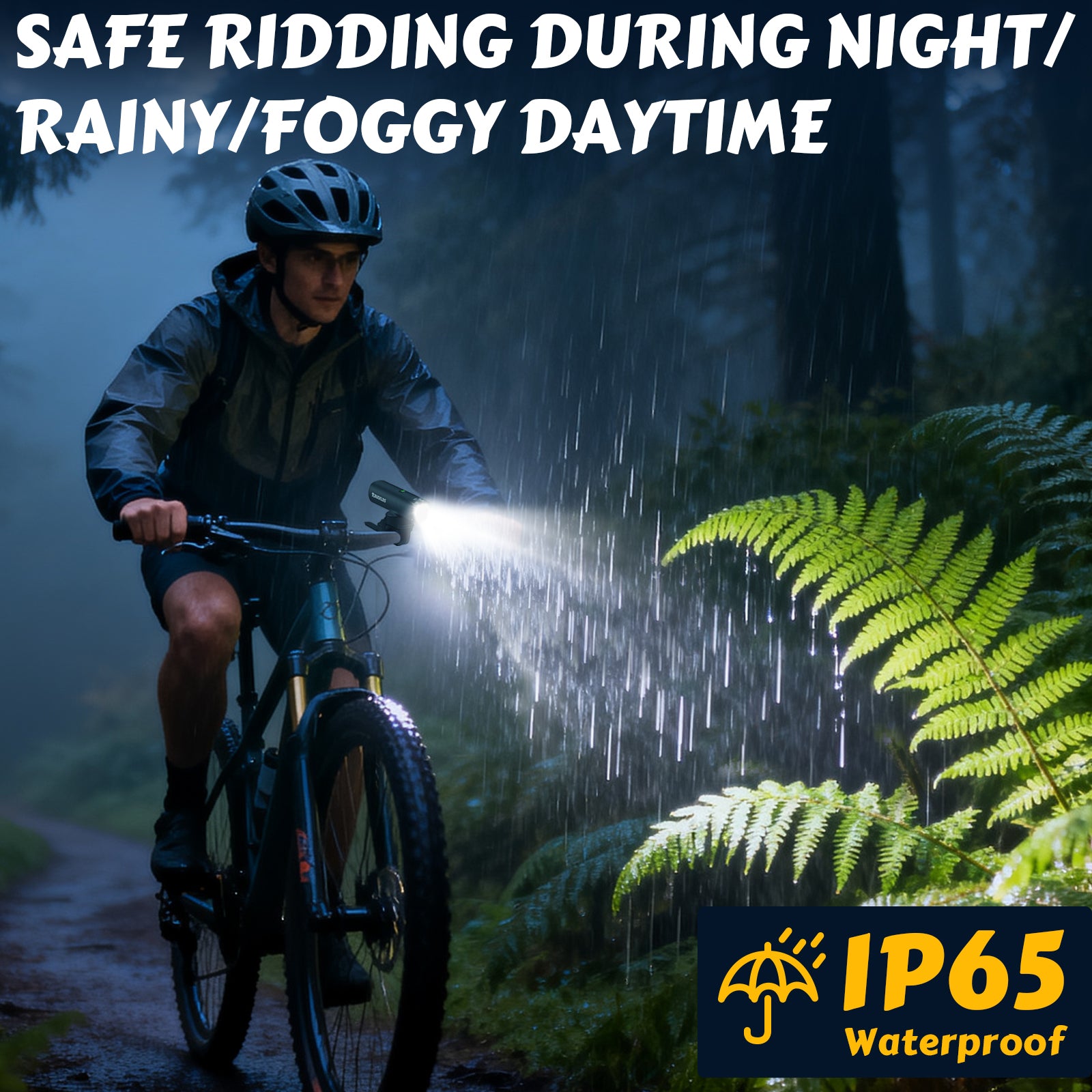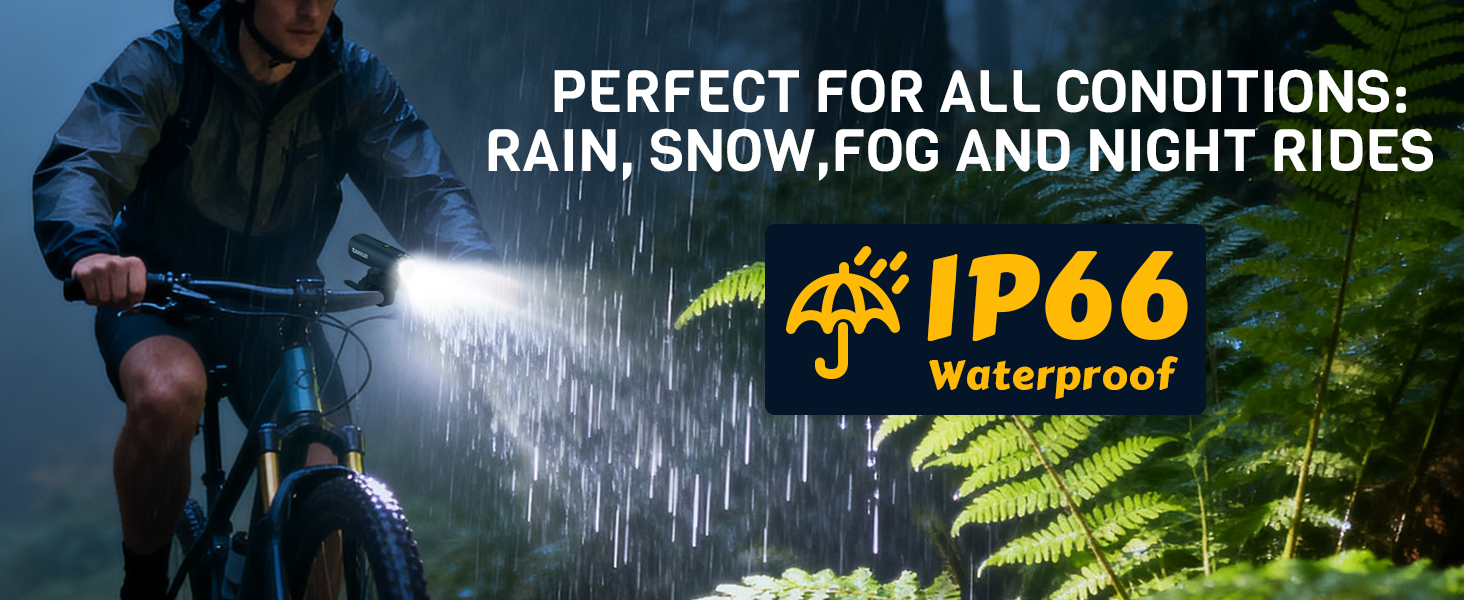 Unbreakable & All-Weather:Built for all terrains, this Bike Headlight features shockproof and IP66 waterproof. Made with high-grade PC and tight seals, it withstands 3-meter impacts, whether mountain bike, ebike, road bike ,gravel bike, bmx ,electric bike