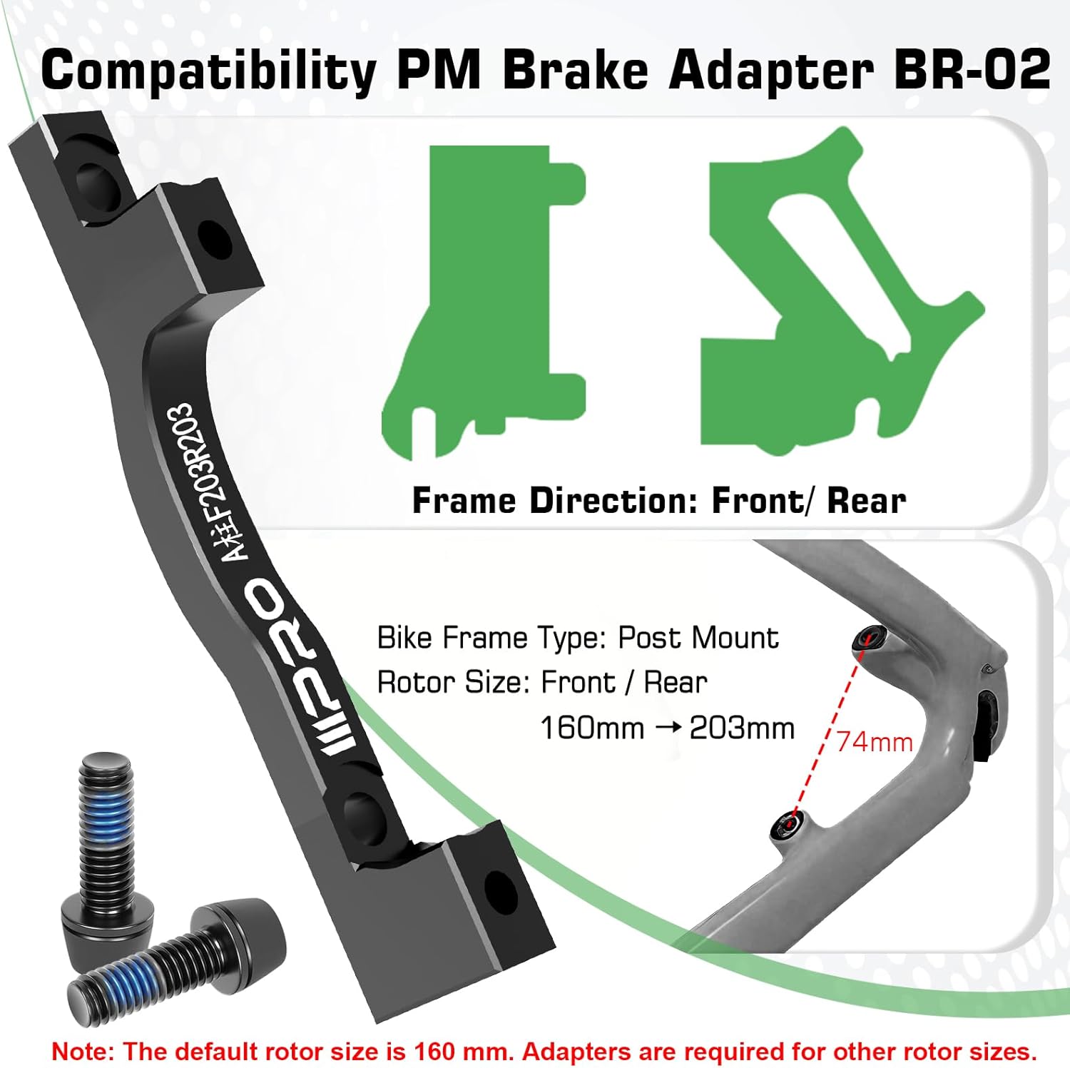 2025 IIIPRO BR-02 PM Front/ Rear 203mm Disc Brake Caliper Post Mount Adapter with Bolts(F/R-203A)