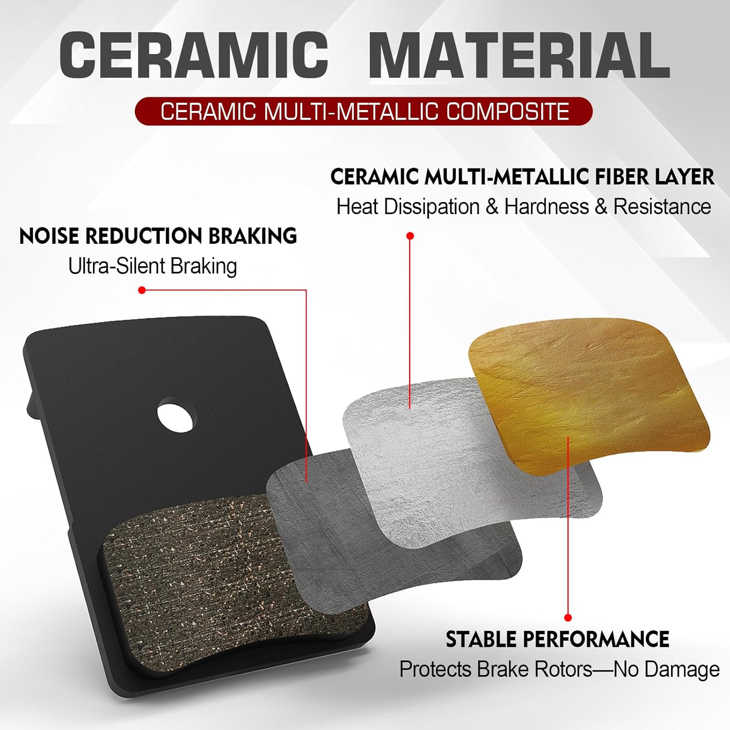 Smooth and Silent Braking : Made of multi metal ceramic composite material, with good mute effect and braking power.