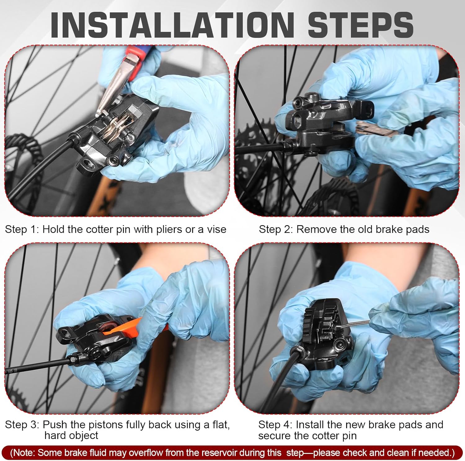 Easy to install: Insert the new brake pads correctly and secure them in the calipers with springs and pins. If there is some friction or the disc rotor is difficult to move, you may need to file the brake pads slightly