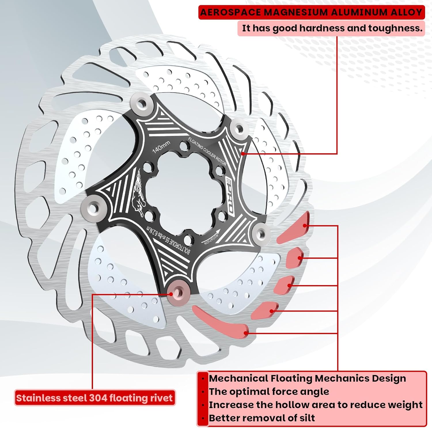 Quiet & Mud-Resistant: Silent braking, scratch-free disc contact, and better mud clearance for MTB, muddy trails, and downhill rides.