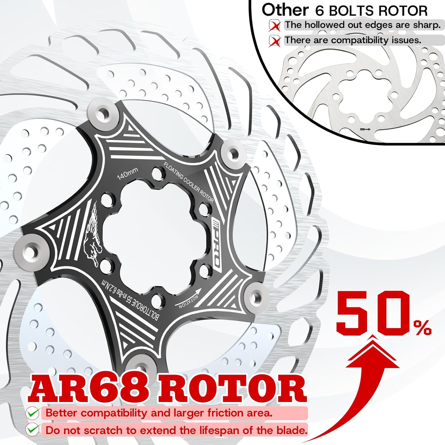 Compatible with Most Bike: AR68 disk brake rotors have 140 mm/160 mm/180 mm/203 mm different size for your choice ,ideal for your mountain bike, road bike, electric ebike,fat bike,folding bike,bmx etc
