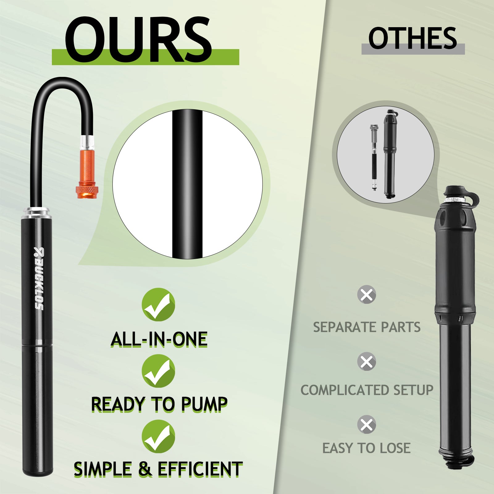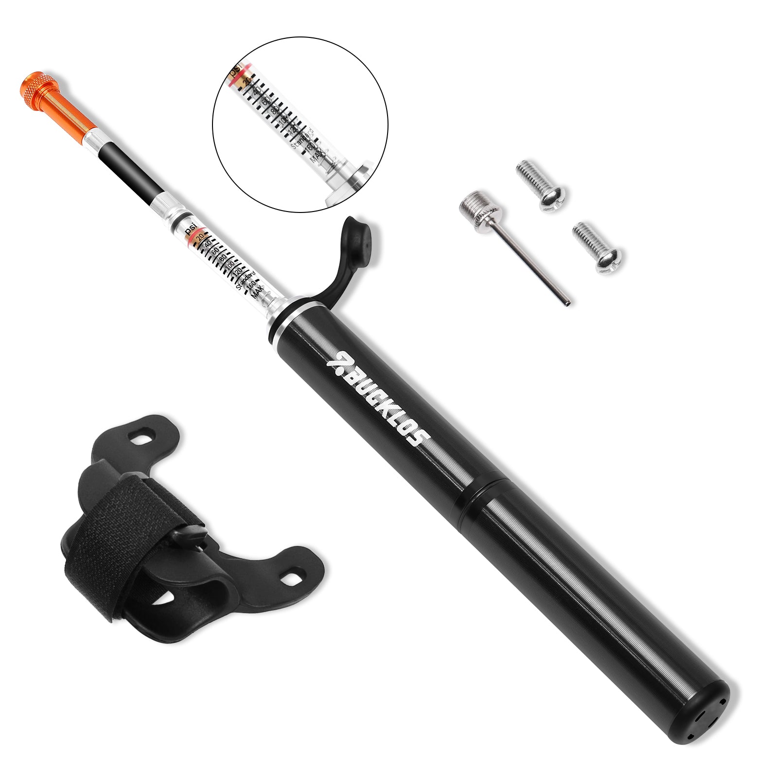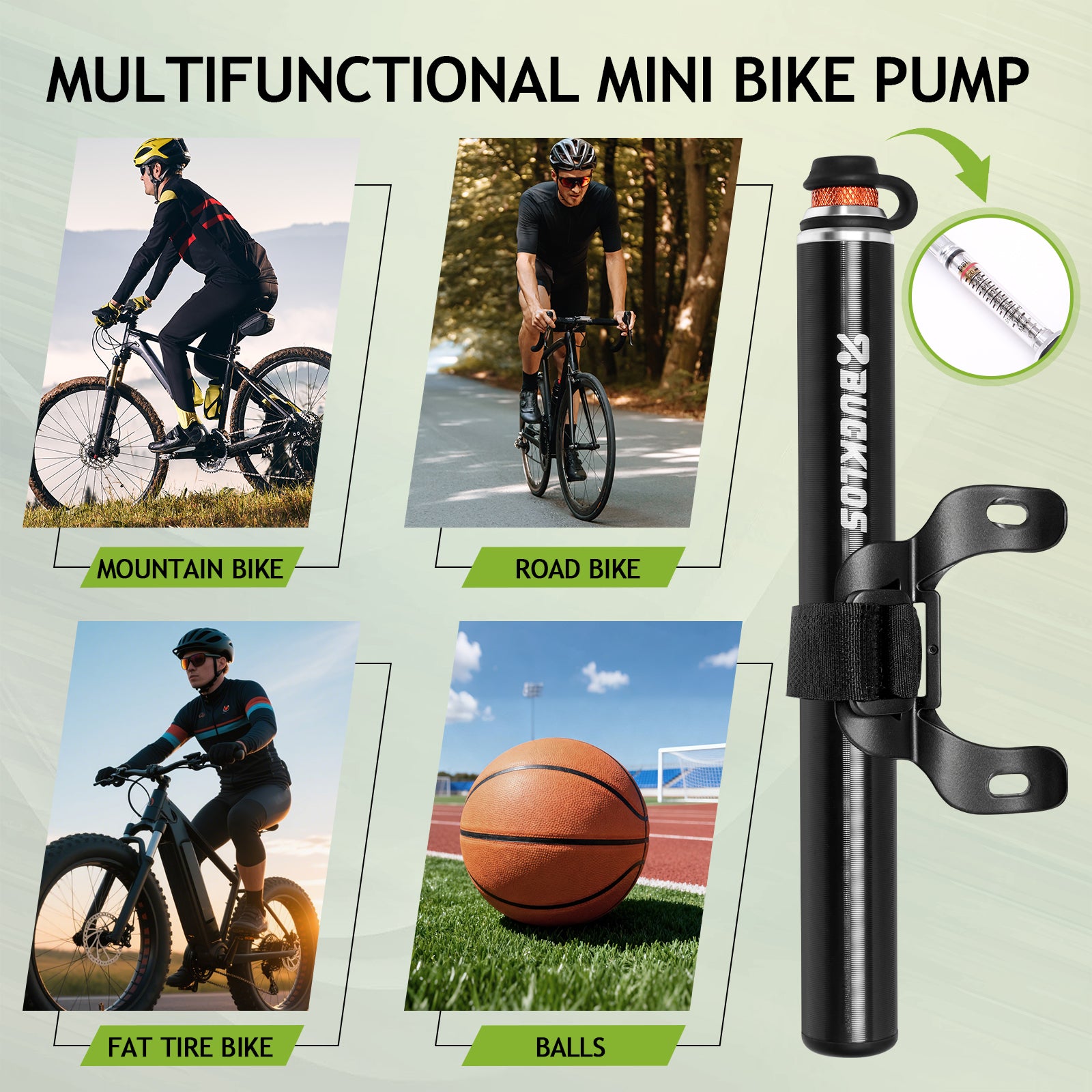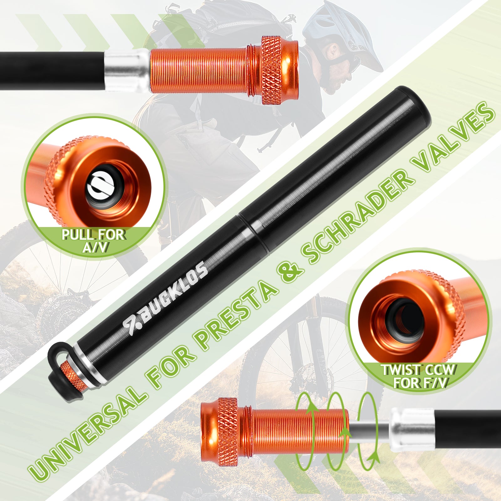 Lightweight & Portable: BUCKLOS mini bike pump with gauge is 23cm long and only 161g, compact and light. The hand tire pump can be easily put into a backpack or on a bike frame, with no burden to carry around
