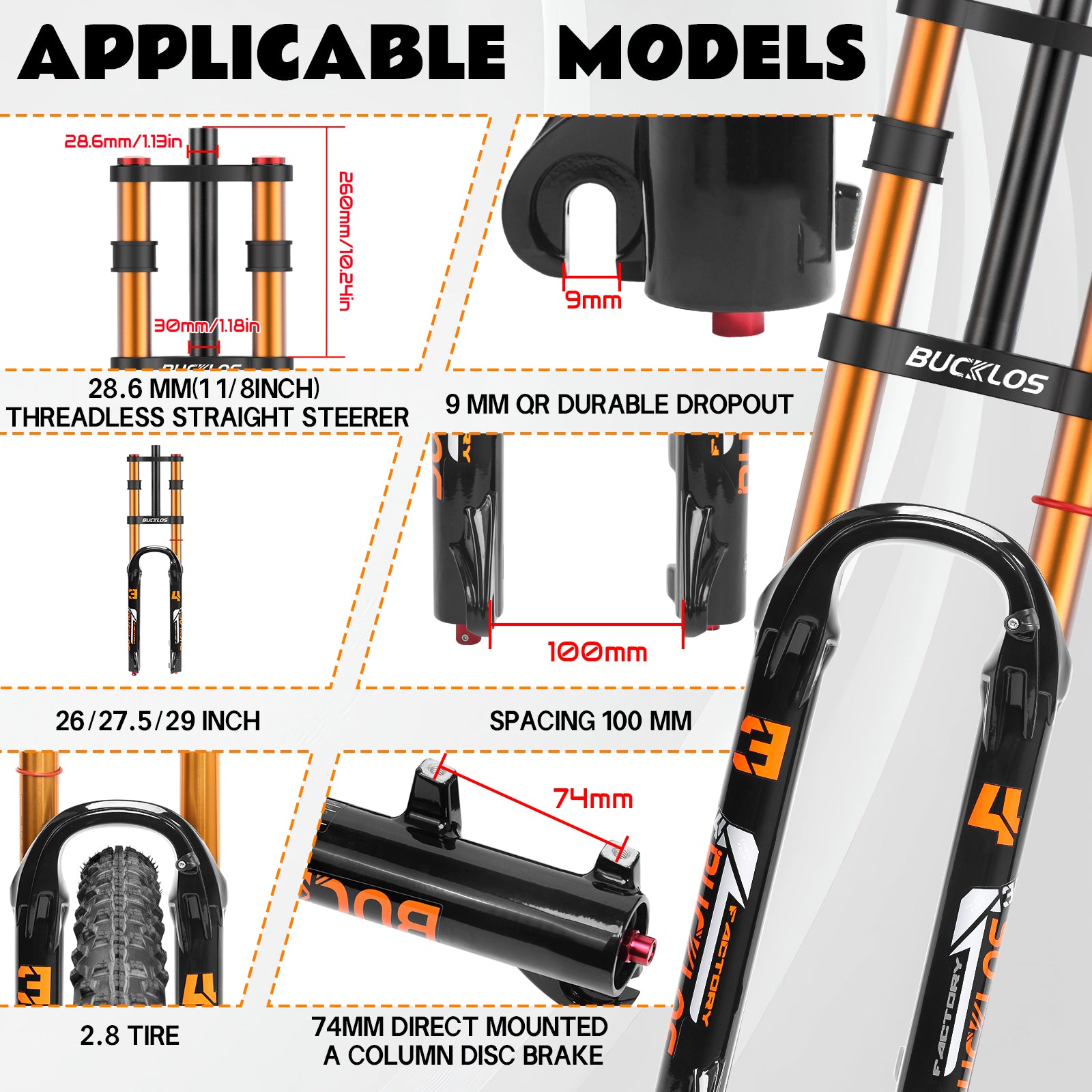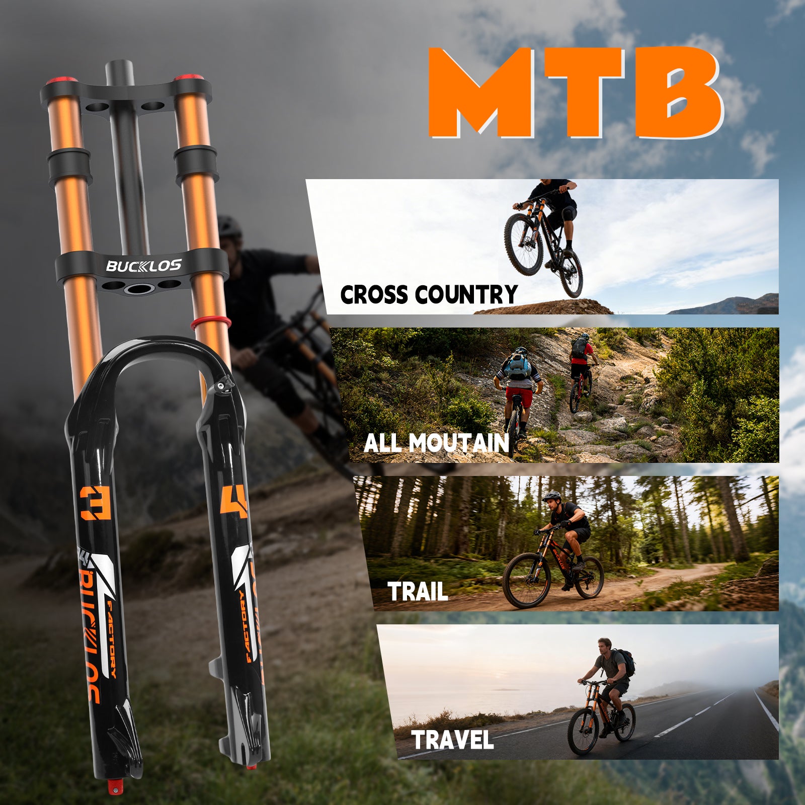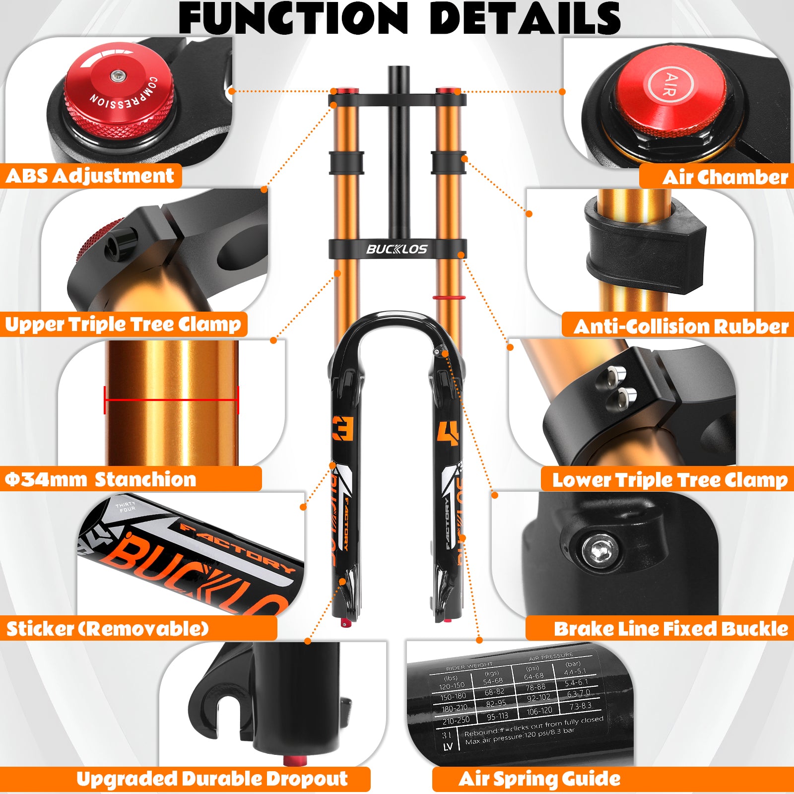 BUCKLOS 34mm Stanchion 180mm Travel Double Crown Air Suspension Fork