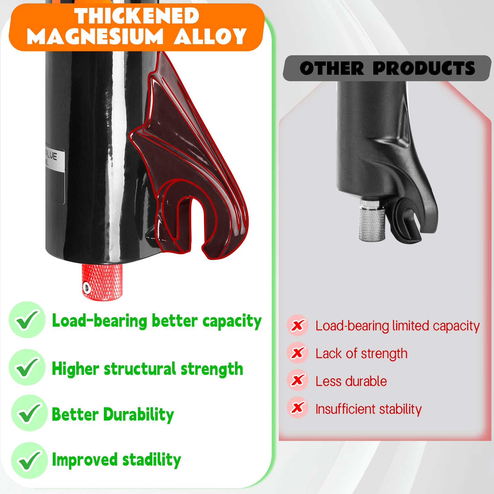 34mm aluminum-magnesium alloy upper tubes enhance rigidity and steering precision. The crown lockout with rebound adjust fine-tunes control, while the 180mm travel and 9mm QR adapt to diverse terrains.