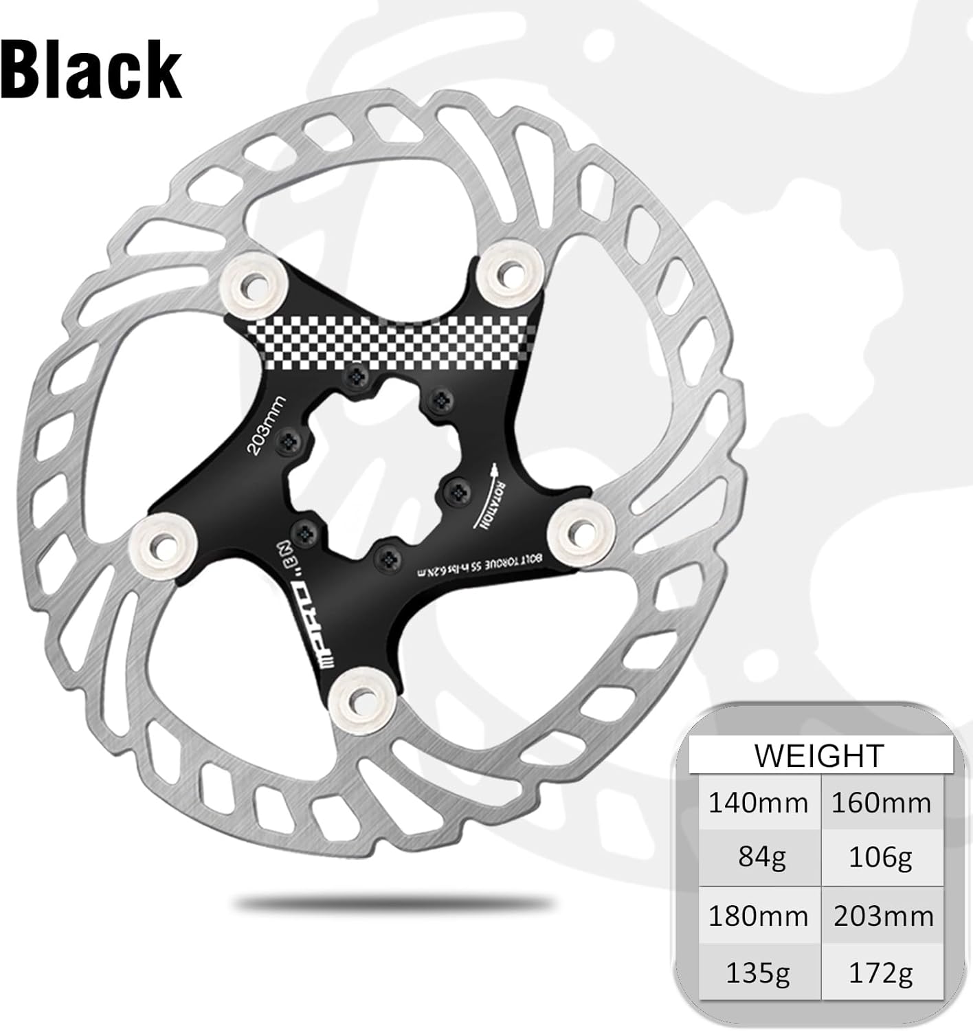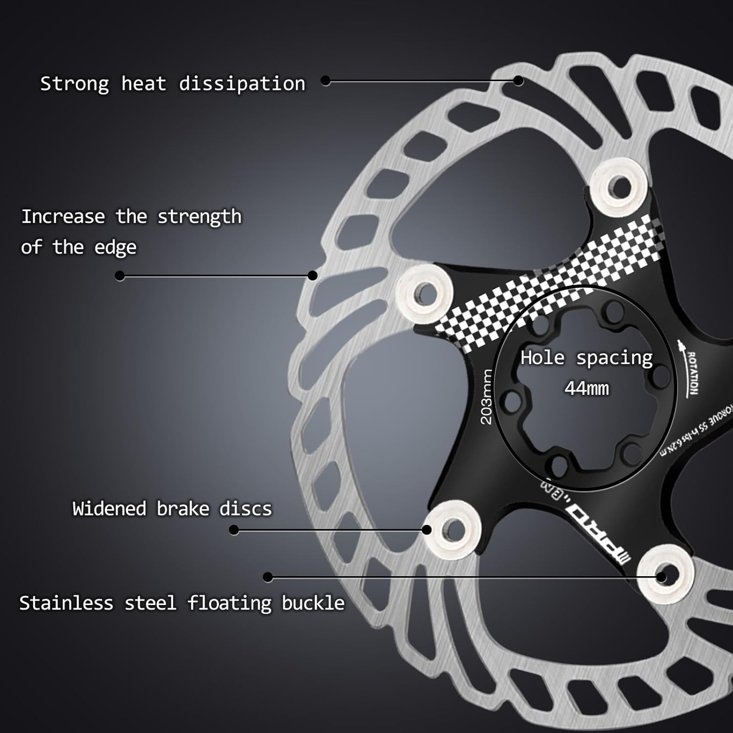 Compatible with Most Bike: Bucklos disk brake rotors have 140 mm、160 mm、180 mm、203 mm different size for your choice ,ideal for your mountain bike, road bike, electric ebike,fat bike,folding bike,bmx etc