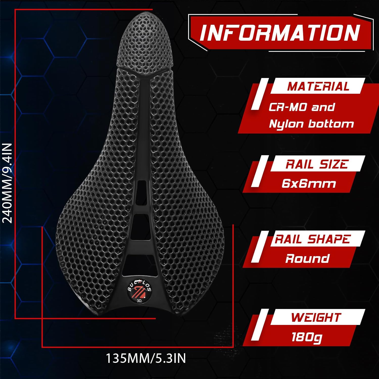 BUCKLOS 3D Printed Bike Saddle - Bicycle Nylon 143 155 mm Bike Seat for Road Bike Mountain Bike Cycling - MTB Gravel Bike Men Women Comfortable Saddles