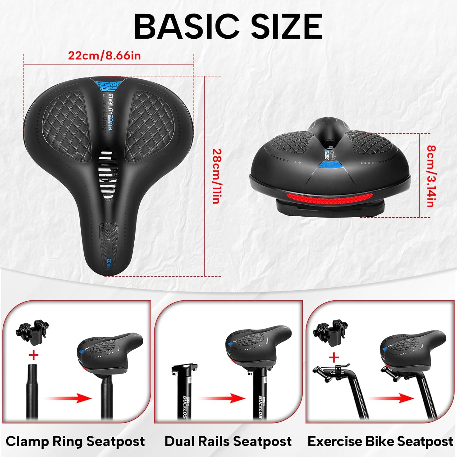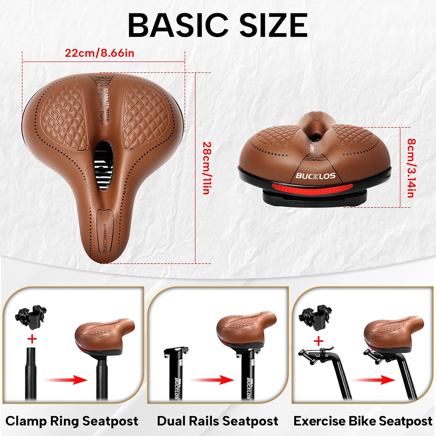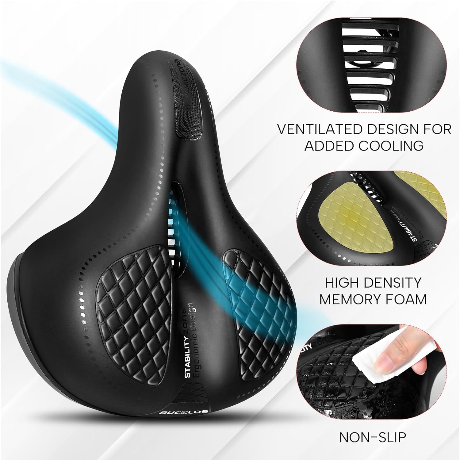 BUCKLOS Comfortable Bike Seat Cushion for Men Women Wide Bicycle Saddle Soft Memory Foam Padded Replacement Seats Fit for Peloton, Exercise Bikes, Ebike,Cruiser