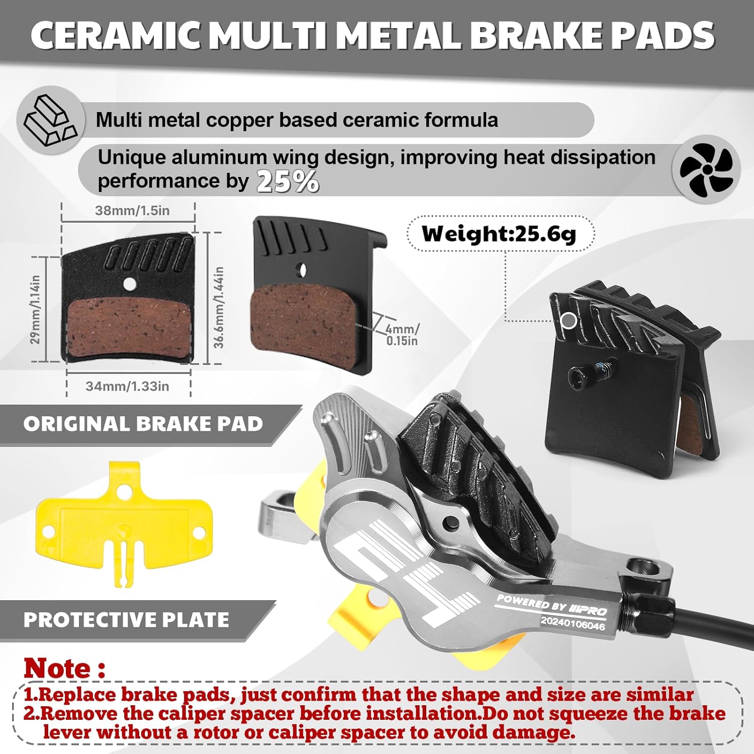 Ceramic Metal Brake Pads: Aluminum Alloy Ceramic Heat Dissipation Pad.It has strong heat dissipation and waterproof properties, provides you with a quieter and safer riding experience
